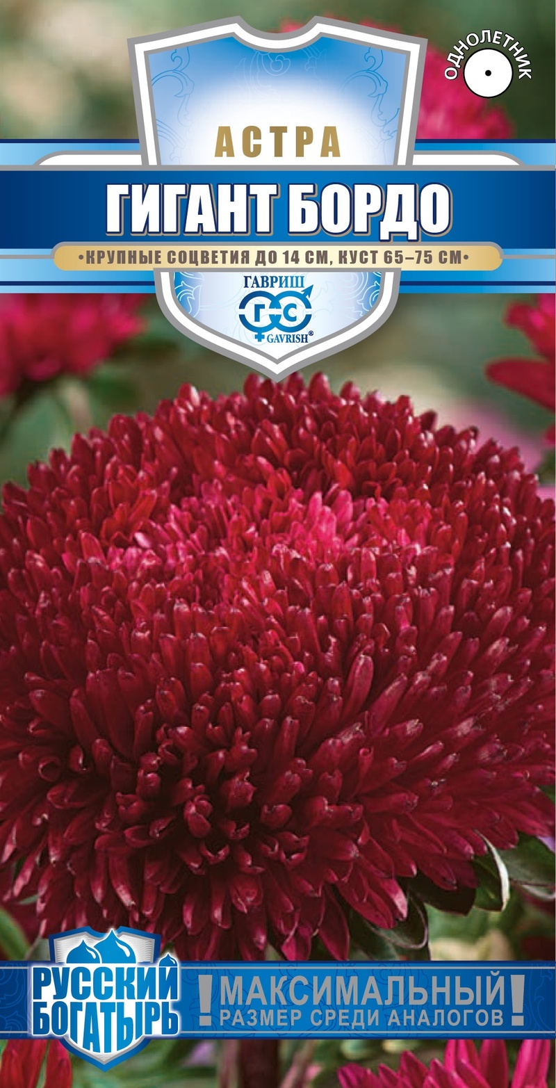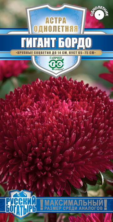 - Астра Гигант бордо, однолетняя* 0,05 г (игольчато-коготковая) серия Русский богатырь Н18