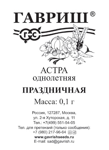 - Астра Праздничная,однолетняя ( махровая смесь) 0,1 г б/п