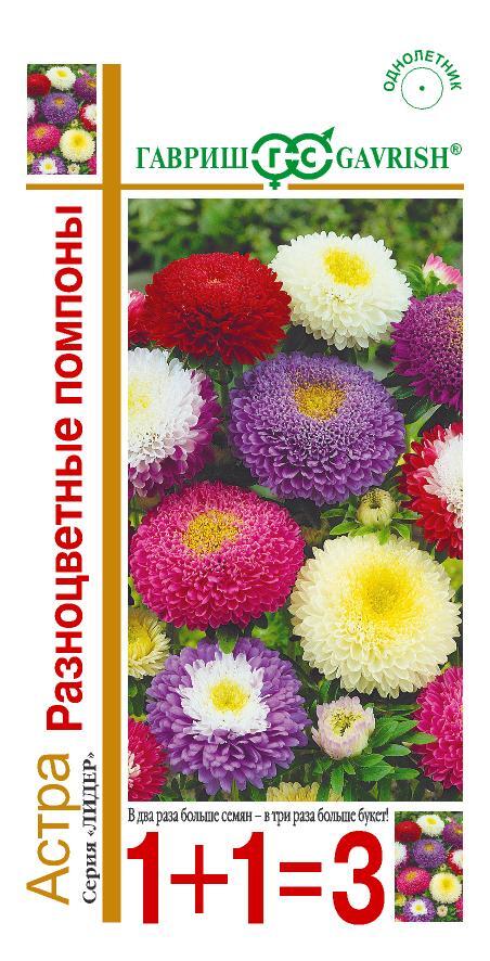 - Астра Разноцветные помпоны, смесь 0,6 г, серия 1+1 Н14