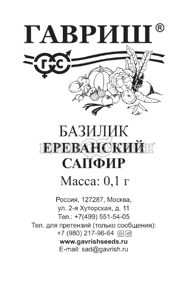 - Базилик овощной Ереванский сапфир 0,1г автор. б/п