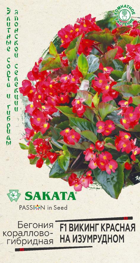 Бегония Викинг красная на изумпрудном F1, гибрид. гранул. 4 шт. проб. Саката сер. Элитная клумба Н21 (Begonia-Corallina-Hybridae)