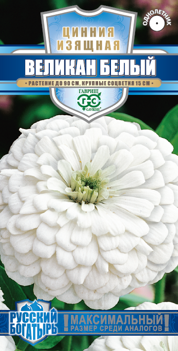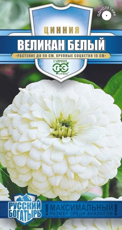 - Цинния Великан белый 0,3 г серия Русский богатырь Н18
