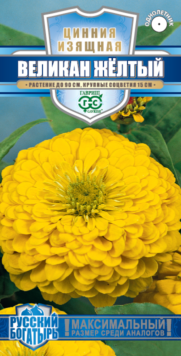 - Цинния Великан желтый 0,3 г серия Русский богатырь Н18