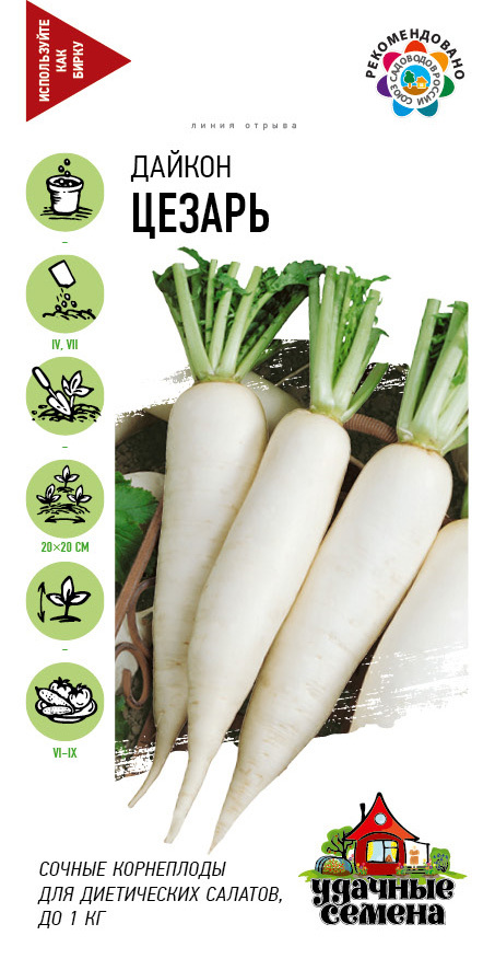 Среднеспелый (70 дней от всходов до технической спелости) сорт. Розетка листьев полуприподнятая. Корнеплод цилиндрический, длиной 35-40 см, массой 0,6-1,0 кг, погруженность в почву на 1/3 - 1/2 длины, легко выдергивается. Мякоть белая, с приятным вкусом. Относительно устойчив к слизистому бактериозу. Рекомендуется для использования в свежем виде и непродолжительного хранения (до 20 дней). Выращивается в открытом и защищенном грунте. Посев проводят в два срока – в конце апреля или во второй половине июля по схеме 8-10 х 20 см. Урожайность 3,2-5,0 кг/м2.
