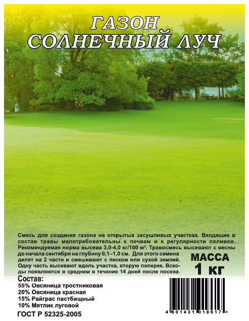 - Газон Солнечный луч 1,0 кг для солнечных мест