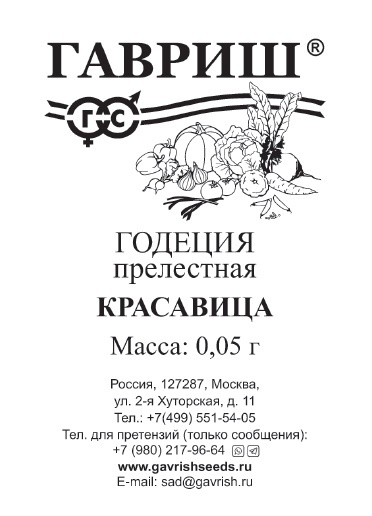 Годеция Красавица, смесь 0,05 г б/п (Godetia amoena (Lehm.) G. Don)