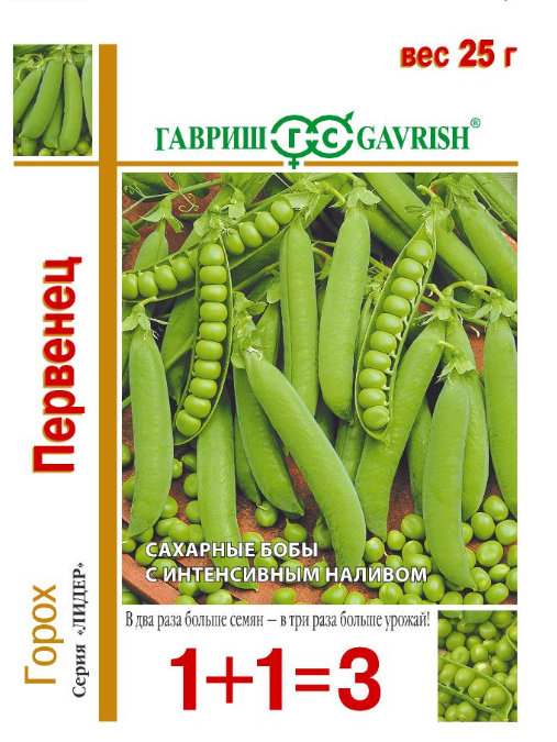 Горох Первенец, сахарный серия 1+1, больш. пак. 25 г (Pisum sativum L. partim)
