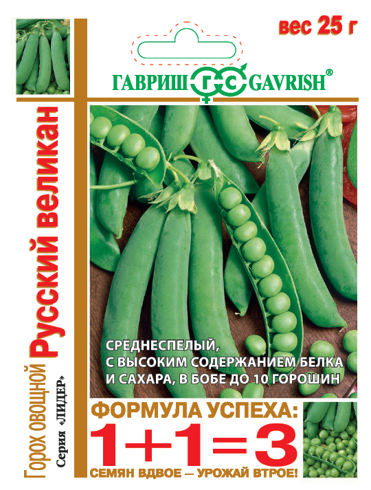 - Горох Русский великан вьющийся серия 1+1/ 25 г автор Н13