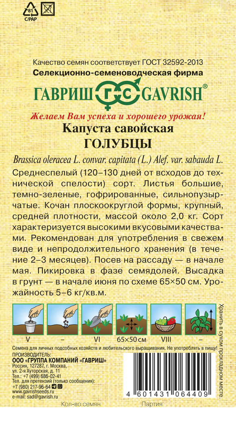 Капуста савойская Голубцы (Brassica oleracea L. convar. capitata (L.) Alef. var. sabauda L.)