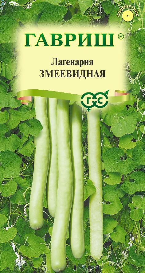 Лагенария — однолетняя декоративная лиана из семейства Тыквенные. Растение сильнорослое и сильноветвистое, с нежно-зелеными, слегка опушенными крупными листьями. Цветки белые, крупные, похожи на огромный раскрытый колокольчик. Плоды цилиндрические, светло-зеленые, длиной 1,5-2,0 м, массой 3,0-7,0 кг, обладают способностью к регенерации, если отрезать часть, то место пореза затягивается и они продолжают расти. Мякоть этой формы вкусная, напоминает кабачок (для употребления в пищу используют молодые завязи не более 50 см в длину). Благодаря эффектному виду самого растения лагенарию широко применяют для вертикального озеленения. Семена высевают на рассаду в конце апреля (рекомендуется предварительное замачивание). Оптимальная для прорастания семян температура почвы 25-30°С. Молодые растения высаживают в открытый грунт в июне, когда минует угроза заморозков.