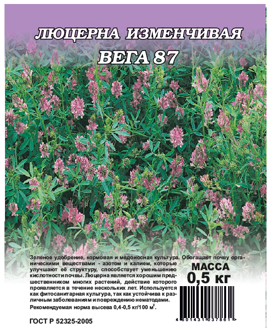 Люцерна Вега 0,5 кг (Medicago sativa L. nothosubsp. varia (Martyn) Arcang.)