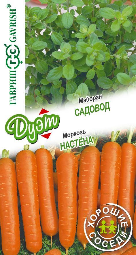 - Морковь Настена 2 г+Майоран Садовод 0,1 г серия Дуэт Хорошие соседи Н18