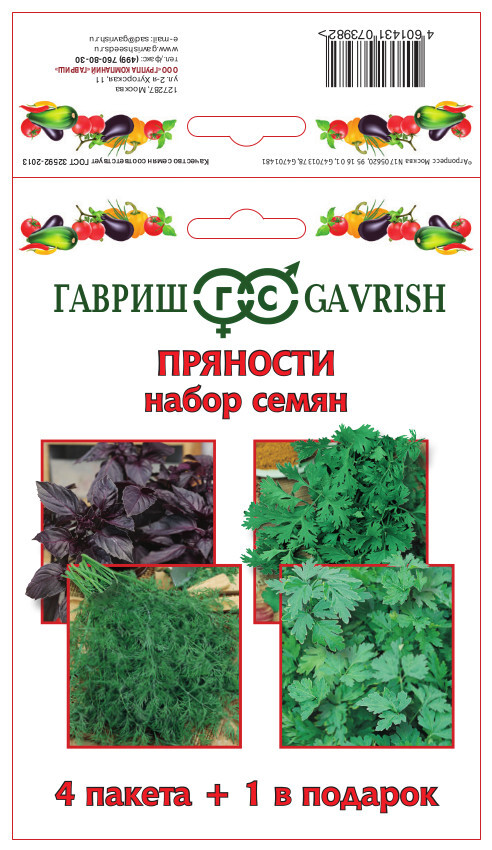 Набор лучших сортов пряно-ароматических и зеленных трав! Семена базилика, кориандра, укропа, петрушки и один пакет семян в подарок.