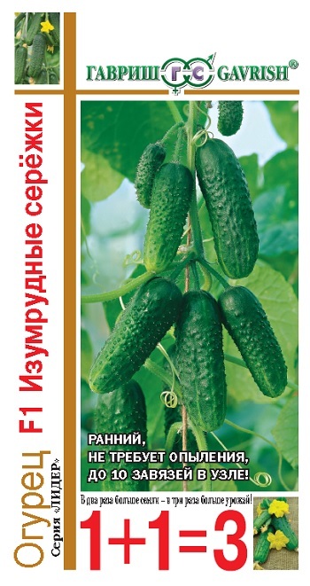 - Огурец Изумрудные сережки F1 серия 1+1/20 шт. корнишон автор.