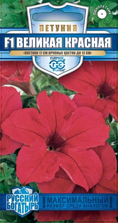 - Петуния Великая красная F1, крупноцв. 7 шт. гранул. пробирка, серия Русский богатырь Н19