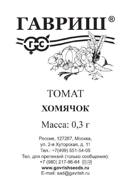 Томат Хомячок 0,3 г б/п Н24 (Solanum lycopersicum L. var. lycopersicum )