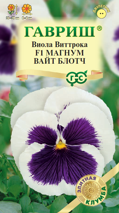 Виола Магнум Вайт Блотч F1, Виттрока 5 шт.* сер. Элитная клумба Н15 (Viola x Wittrockiana Gams)