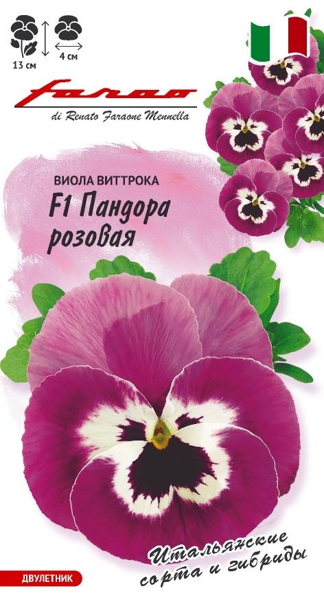 Популярное двулетнее растение из семейства Фиалковые. Серия Пандора отличается миниатюрным кустиком (до 12 см) с многочисленными розовыми цветками (диаметром 2-3 см), продолжительным и пышным цветением с ранней весны до поздней осени. Образует живой ковер из цветов. Растение влаголюбивое, холодостойкое, хорошо растет на солнце и в полутени. Для получения растений, цветущих в год посева, семена высевают на рассаду в феврале-марте. Всходы появляются через 5-7 дней. В открытый грунт рассаду высаживают в конце апреля - начале мая на расстоянии 15-20 см. Хорошо переносят пересадку в цветущем состоянии. При посеве в открытый грунт в июне-июле, цветение наступает во второй год. Используют для посадки на клумбы, в рабатки, балконные ящики и садовые вазы.