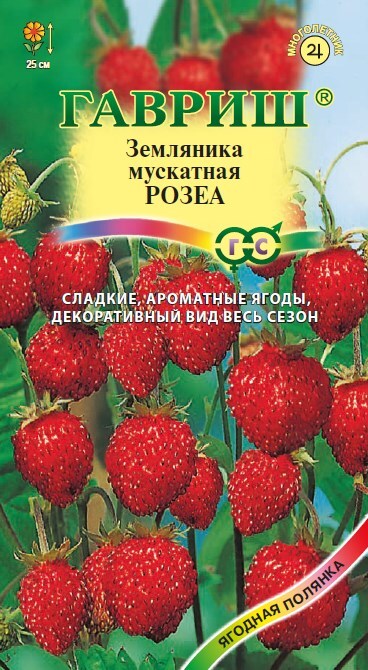 Многолетнее травянистое растение рода земляники семейства розоцветных. Высота 30-35 см. Ягоды мелкие (1,5-2,5 г), конические, розовато-фиолетовые, с белой мякотью, сладкие, пряные, с сильным ароматом. Цветоносы высокие, выше листьев, не поникающие, благодаря чему ягоды не соприкасаются с почвой и слабо поражаются серой гнилью и другими болезнями. Земляника довольно зимостойка, но продолжительные морозы без снега вызывают гибель растений. Лучше растет и плодоносит при небольшом затенении. Ягоды употребляются в свежем виде и используются для переработки (варенье, компоты). Посев земляники следует производить в марте-апреле. Семена смешивают с песком и равномерно распределяют по увлажненной ровной поверхности. Всходы появляются в течение 30 дней. В фазе 1-2 настоящих листьев сеянцы пикируют в горшочки. После появления 6 настоящих листьев можно производить посадку в грунт с расстоянием между рядами 25-30 см, между растениями 15-20 см.
