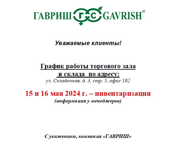 Для связи использовать телефон +7 (499) 686-02-41 или написать на почту sad@gavrish.ru